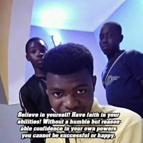 Scrolling all the way down on Dan’s timeline to his very first post on Facebook, a personal photo suddenly pops up after all. Three African boys look into the camera. The caption: “Believe in yourself! Have faith in your abilities! Without a humble but reasonable confidence in your own powers you cannot be successful or happy.” Even scammers have their inspirational memes.