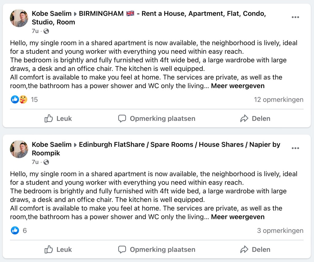 Lekker makkelijk: dezelfde advertentie in huisvestingsgroepen in verschillende steden